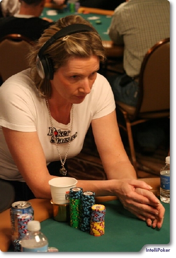 There I was, down to 10k in chips after about 3 hours into the tournament. Now, from about 3 p.m. until 11 p.m. that did not change. I was absolutly card dead and could only manage to keep my chip stack by well placed raises or re-raises which have been bluffs in 100% of the cases. There have not even been semi-bluffs with hands like suited 89. My best hand in this time was :4c:4s on the button which I raised, got called by the BB (yes, the player who had beaten my AA earlier on) and on a checked through board I managed to beat his :As:Js. Katja stopped by from time to time reporting about her rollercoaster ride from "all the chips" to "almost no chips" several times (she lost two brutal hands in one level, both times with pocket QQ when the money went in she was a huge favorite).